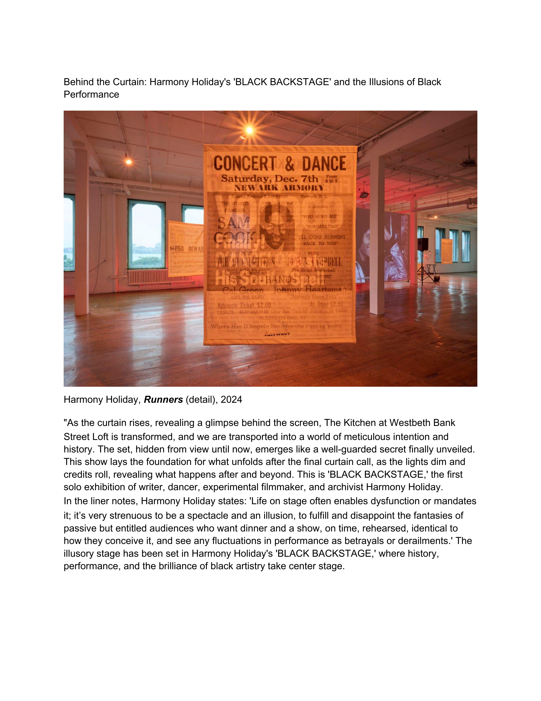 Harmony Holiday: BLACK BACKSTAGEBy LaTefy Dolley ArtSeenJuly/August 2025 The Kitchen at Westbeth March 21 – May 25, 2024